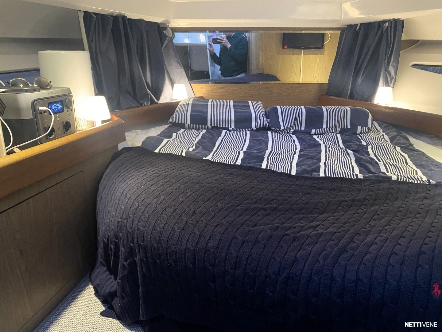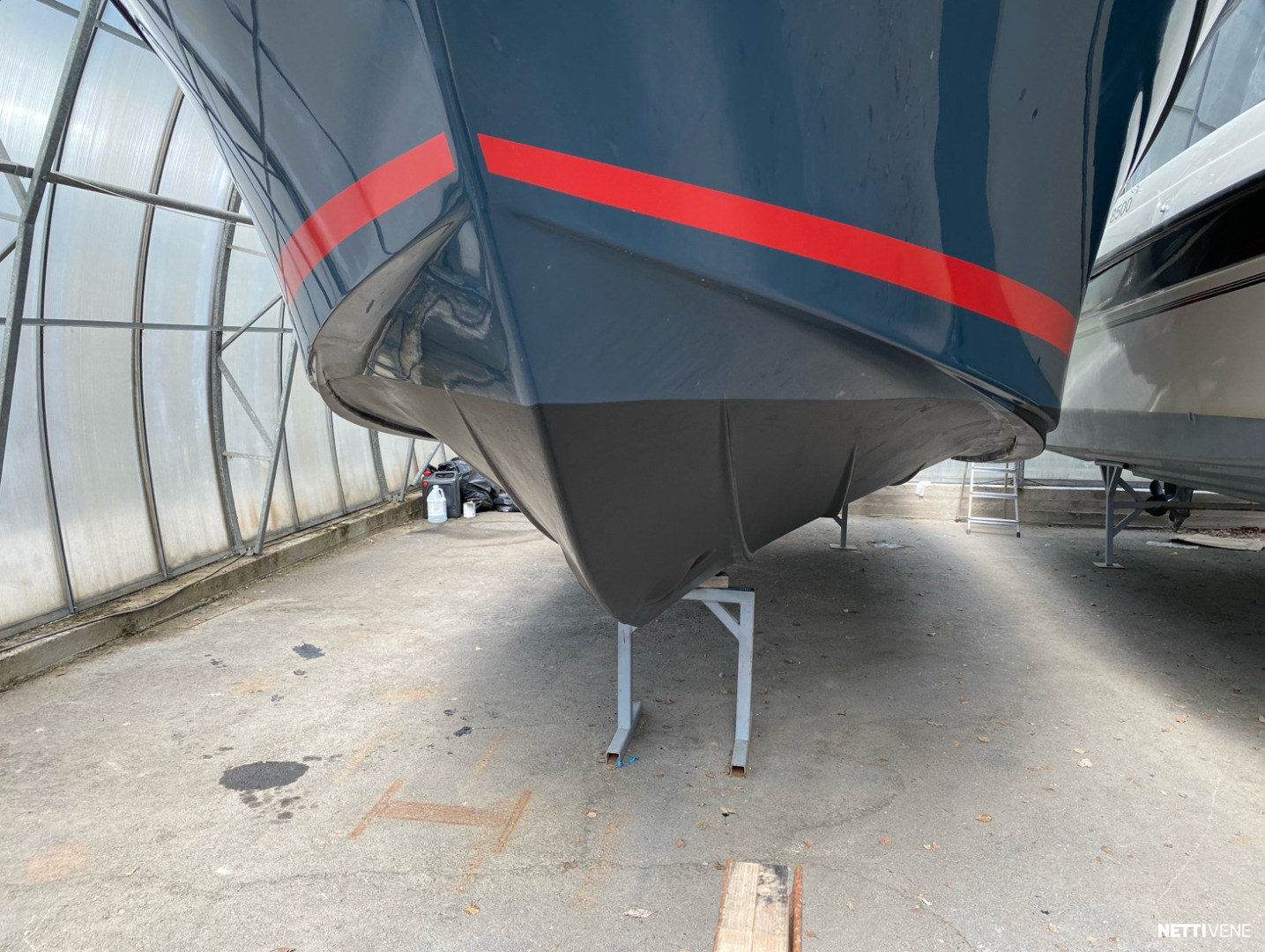 Tiloiltaan erinomainen ja lisäksi kattavasti varusteltu matkavene. Tämä yksilö on varustettu luotettavalla Yamahan moottorilla, joka on vakiona 225hp, mutta on päivitetty 300hp tehoiseksi.