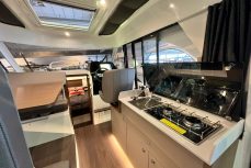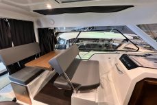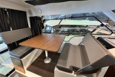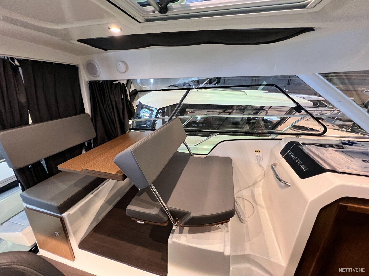 Salongissa dinetti, jonka saa konvertoitua lisävuoteeksi. Avotilassa myös pöytäryhmä, jossa voi ruokailla ja nautiskella merellä olosta.
