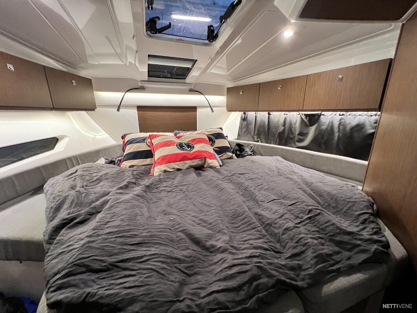 Erinomaiset tilat pidemmillekin venereissuille. Kaksi erillistä ja ovellista makuuhyttiä takaa mukavat yöunet omassa rauhassa.