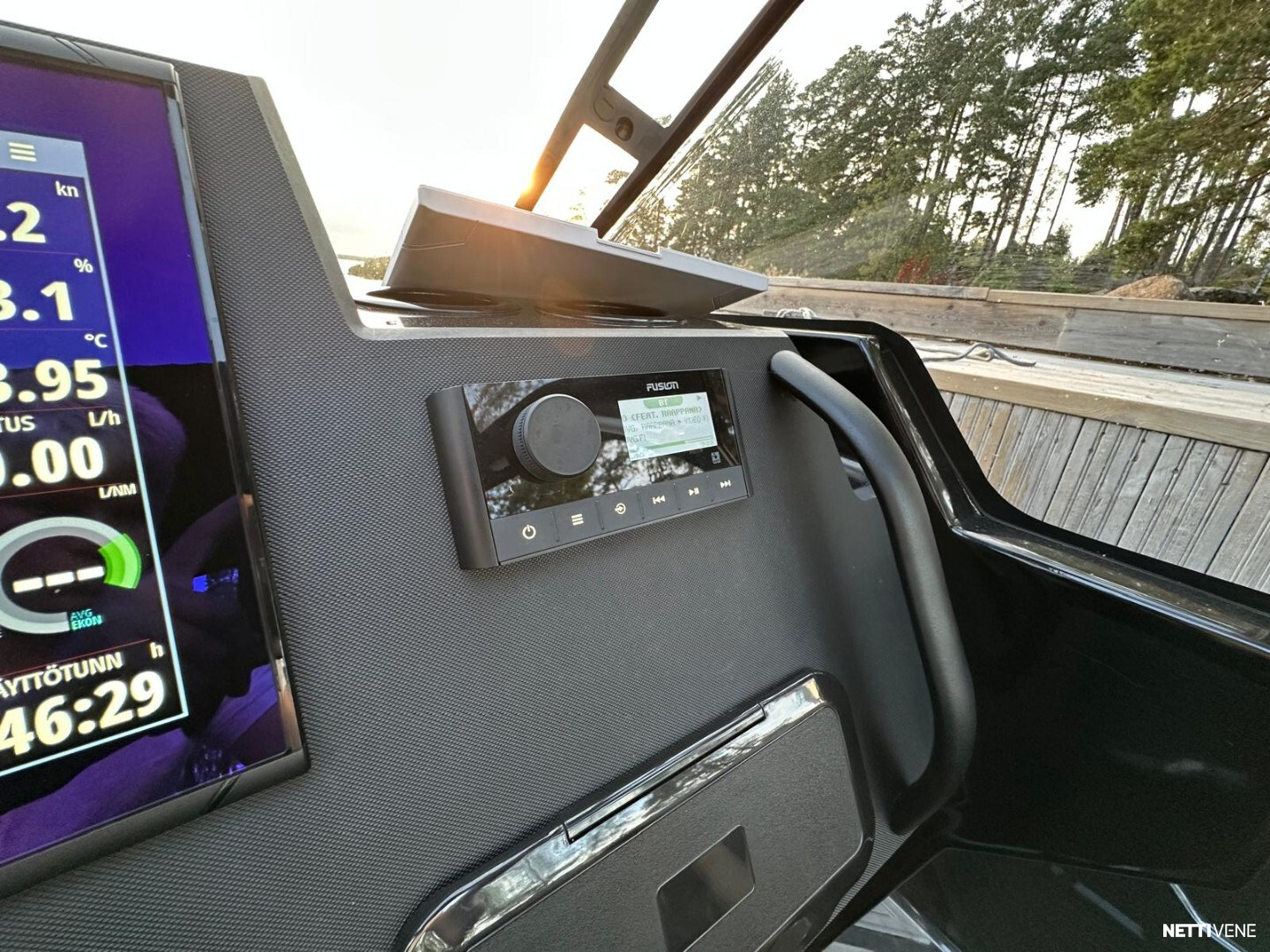 Tämä vene on kattavilla varusteilla: