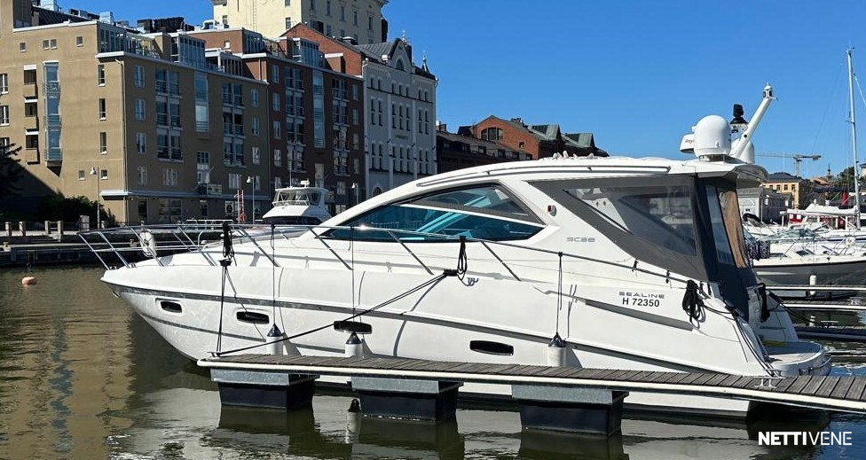 Upea, tilava matkavene Sealine SC38, jota on päivitetty todella laajasti niin kosmeettisesti kuin teknisesti.