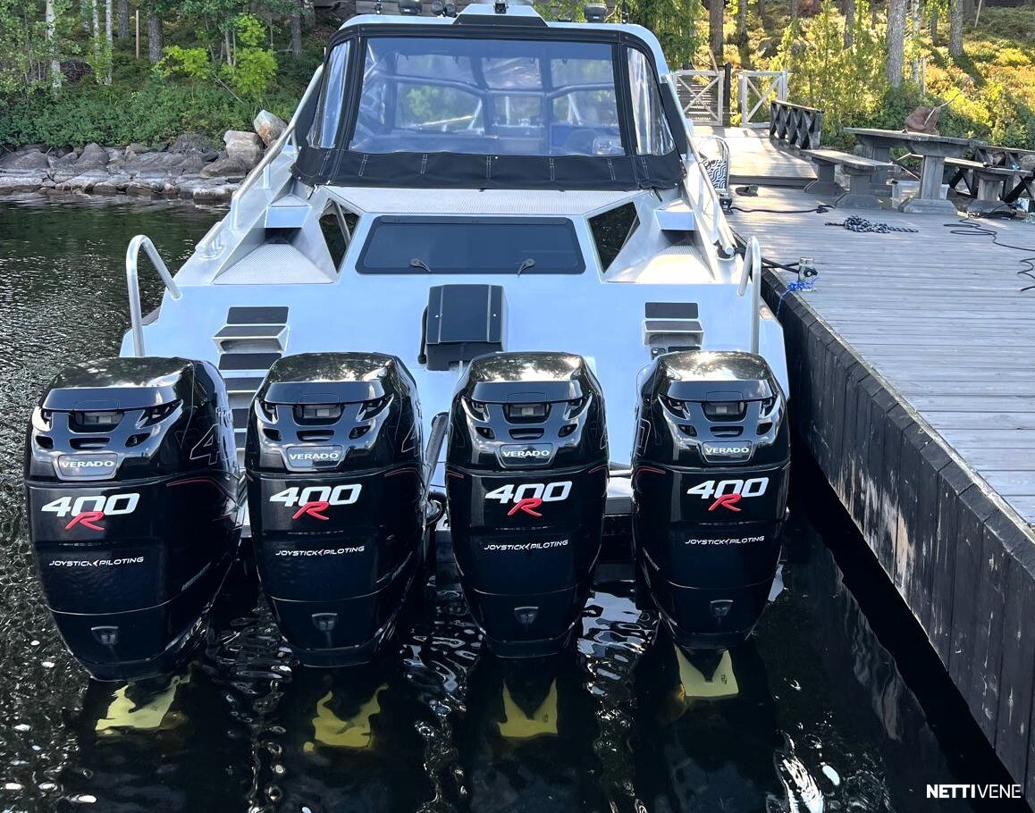Tämä Anytec 1221 SPD on varustettu neljällä Mercury R400 Racing moottorilla, joiden myötä kokonaisteho on huikeat 1600hv. Yhdessä alumiinirungon ja moottoreiden tarjoaman tehoreservin myötä tämä vene tarjoaa huikean suorituskyvyn.