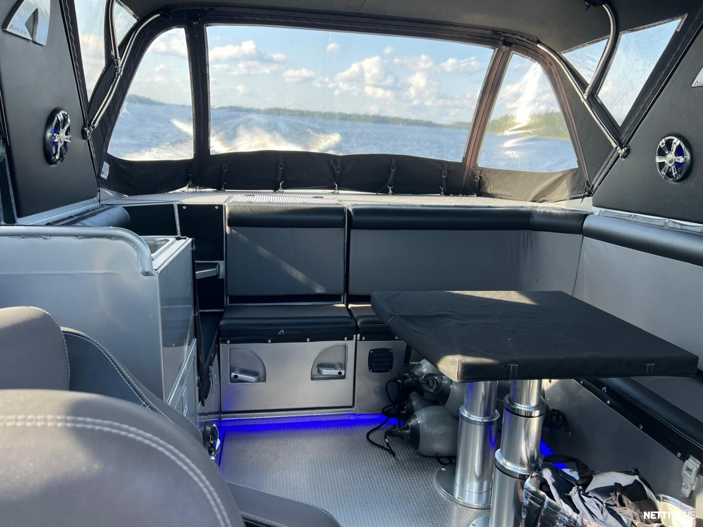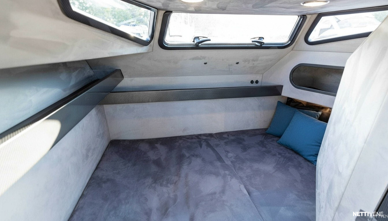 Veneestä löytyy myös tilava takahytti ja erillinen WC, joten yöpyminenkin onnistuu mukavasti.