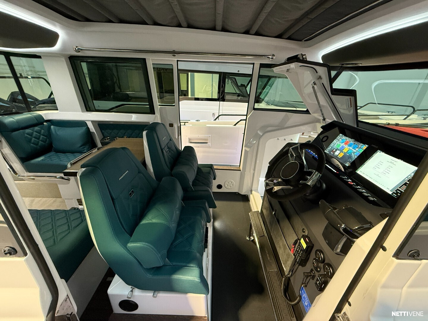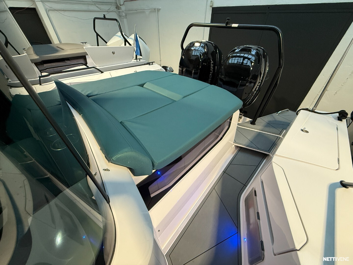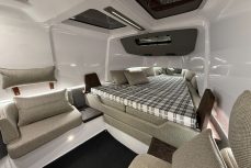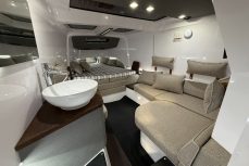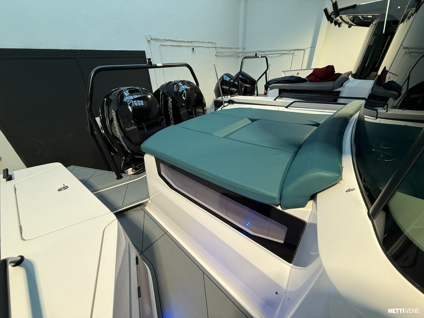 Moottoreina 2 x Mercury Verado 350, joissa Mercuryn JPO Joystick -ohjausjärjestelmä. Järjestelmä sisältää autopilotin ja skyhook-pysäköintitoiminnon.