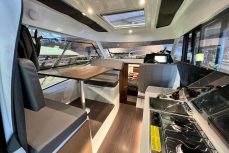 Avotila muuntuu suureksi aurinkotasoksi, ja Elegance-verhoilu viimeistelee laadukkaan kokonaisuuden. Vene soveltuu erinomaisesti perheille ja matkaveneilyyn.