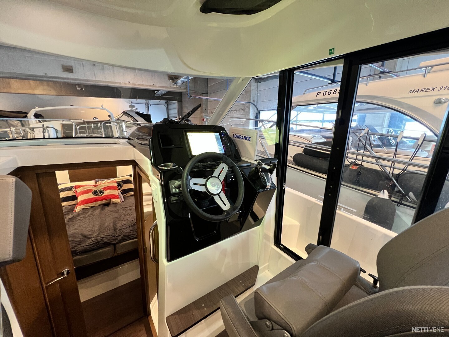 Navigoinnista vastaa suuri Lowrance 12” IPS kosketusnäyttöinen monitoimijärjestelmä kaikuluotaimella ja C-Map Discover -kartalla. Suuret 600 litran polttoainesäiliöt mahdollistavat pitkän toimintasäteen. Mukavuutta lisäävät sähkötoiminen WC makeavesihuuhtelulla, 25 litran lämminvesivaraaja, sisä- ja ulkosuihku sekä Eber-lämmitys, jotka tekevät veneilystä miellyttävää myös viileämmissä olosuhteissa.
