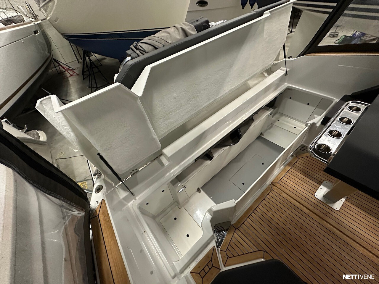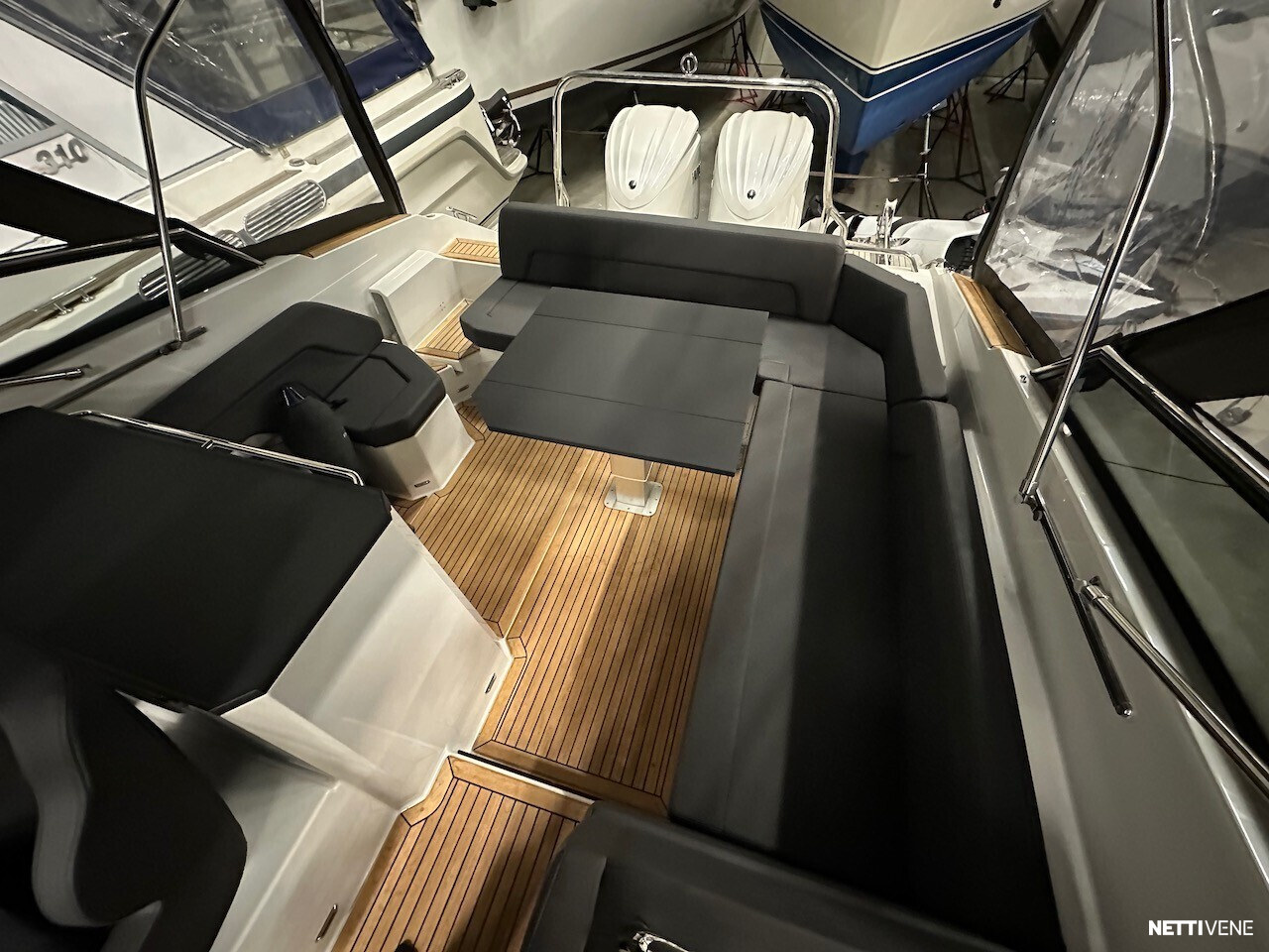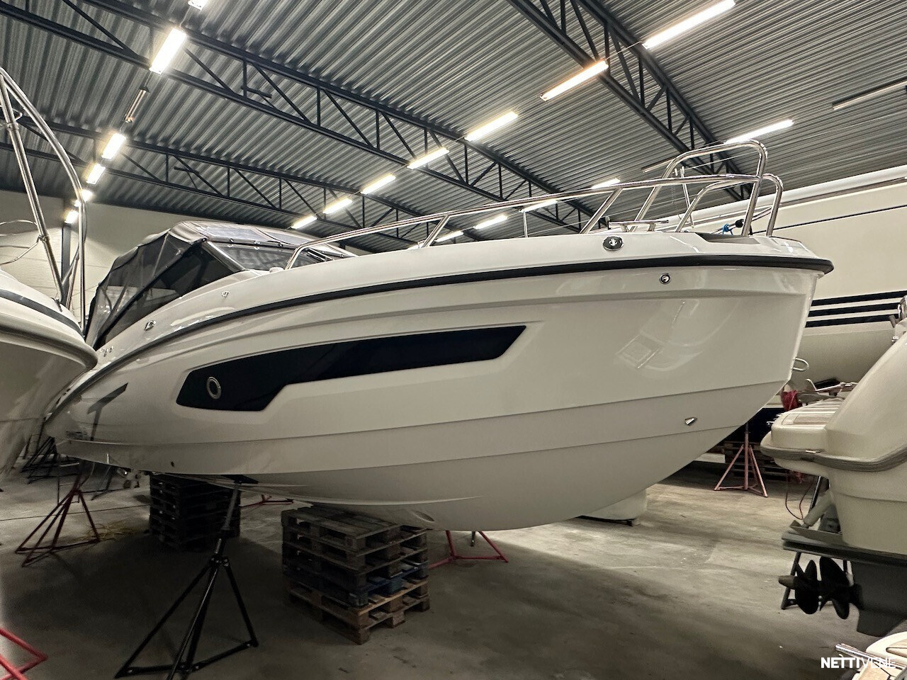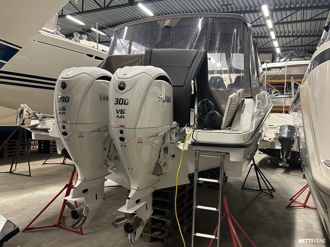 Vaihtoehto uudelle: Huippuhieno yksilö kokovalkoisella rungolla ja valkoisilla Yamahan F300 moottoreilla.