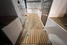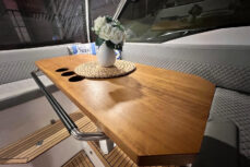 Tiikkilaminaatti ohjaamossa, sivukansilla, keulassa ja uimatasolla