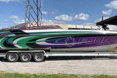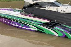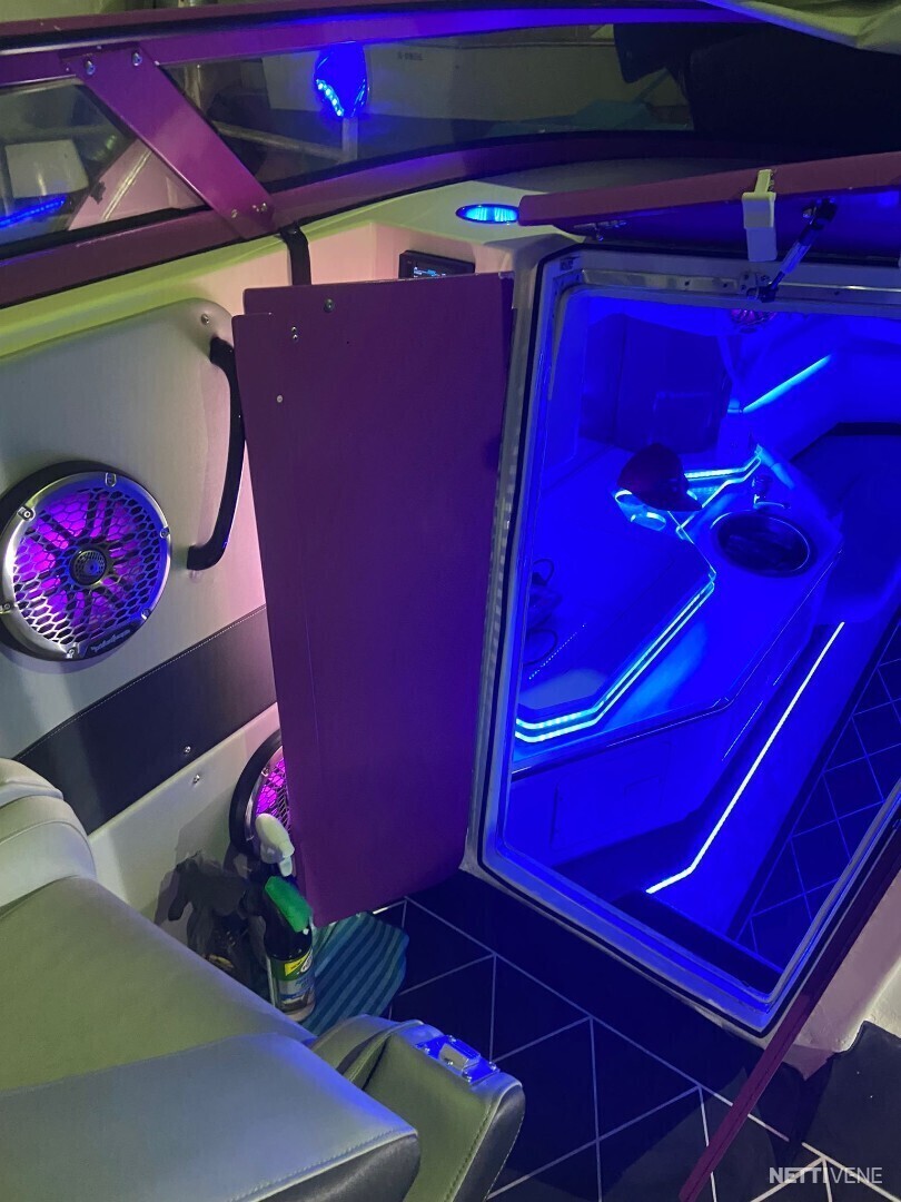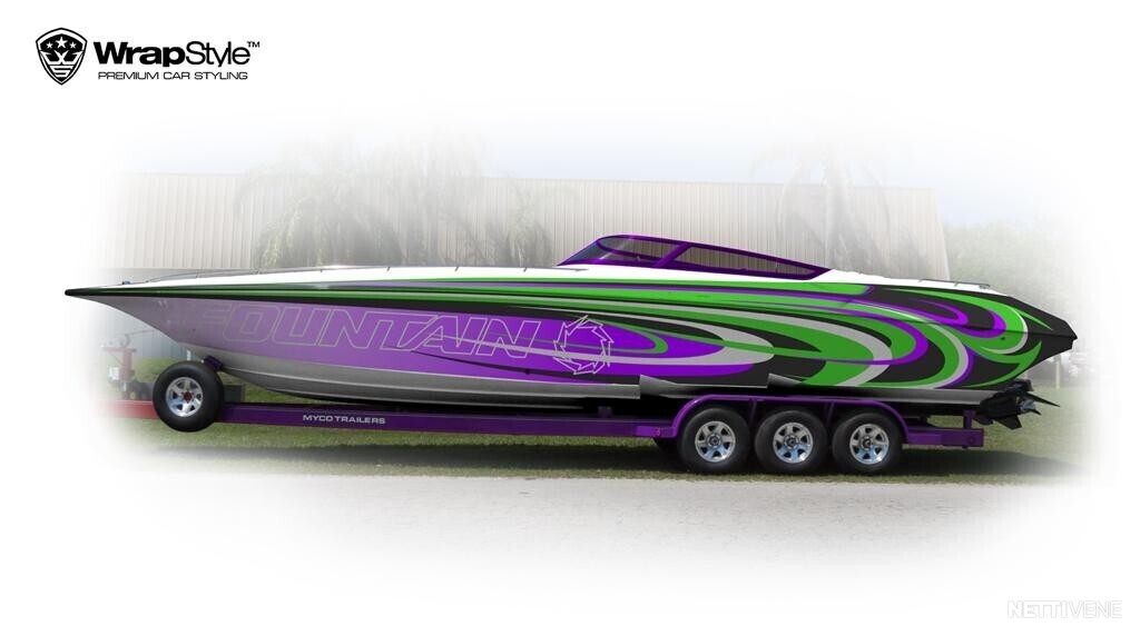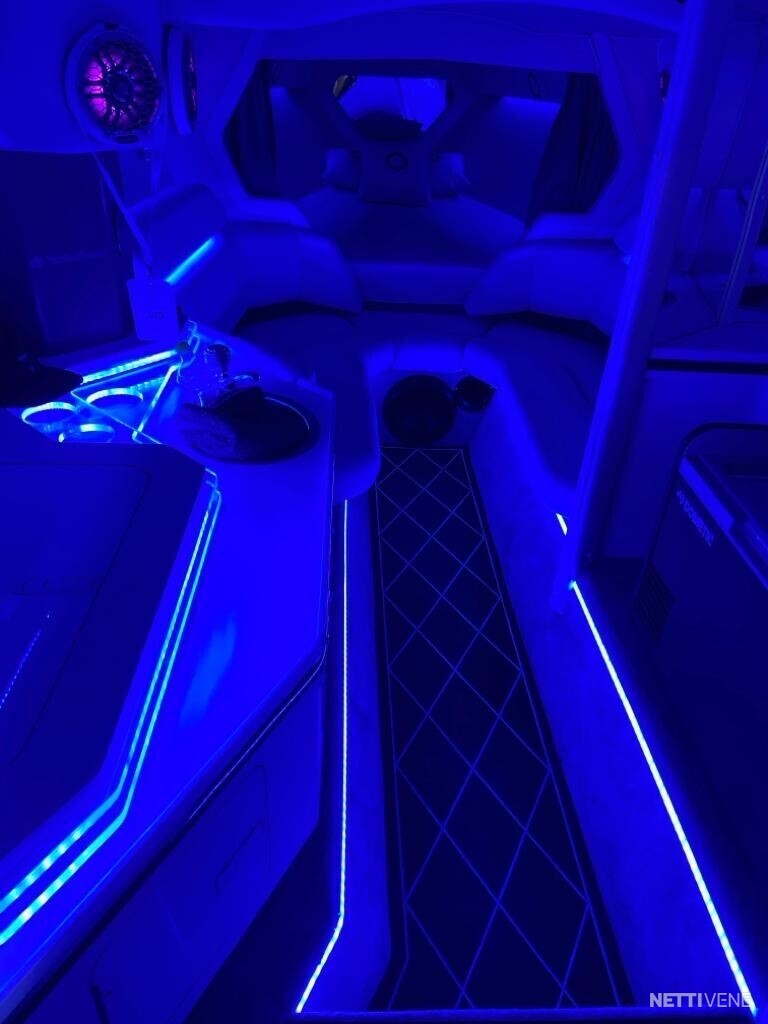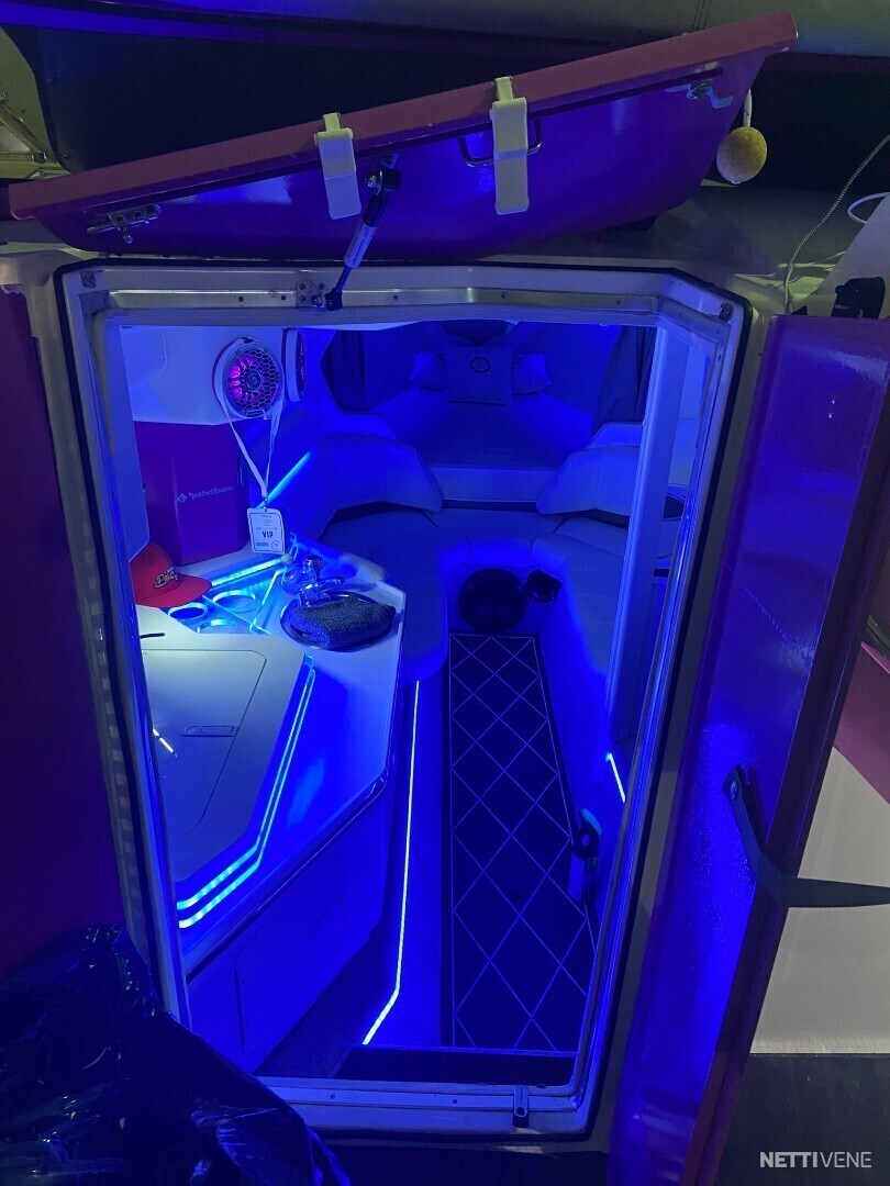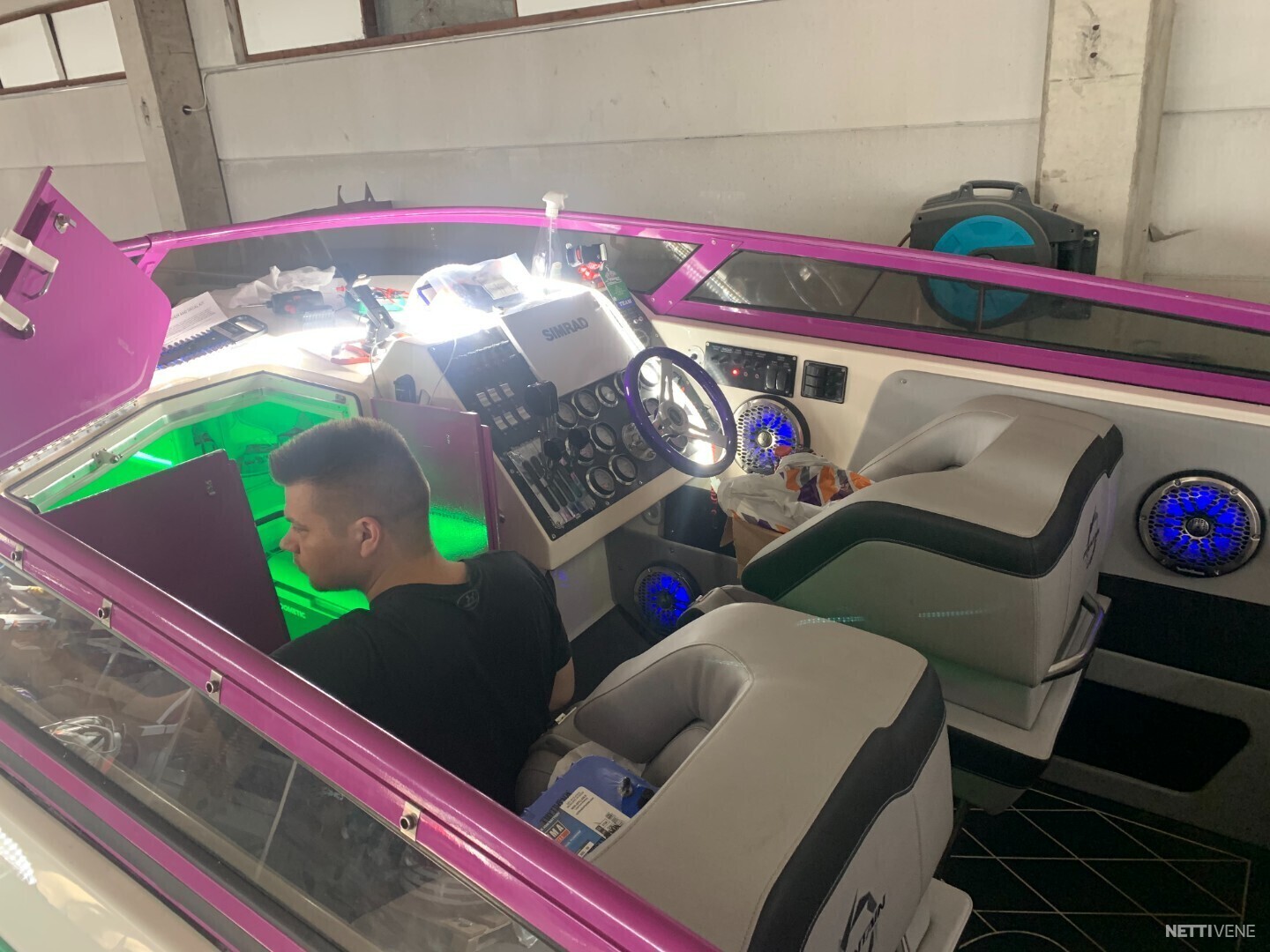 Veneessä uniikki yliteippaus, joka taittaa valoa hienosti valosta riippuen. Teipit suunnitellut ja asentanut My Dream Boat. Valmiit kaavat saatavilla teipeistä, jonka pohjalta helppo tulostuttaa uudet, mikäli haluaa vaihtaa joskus.