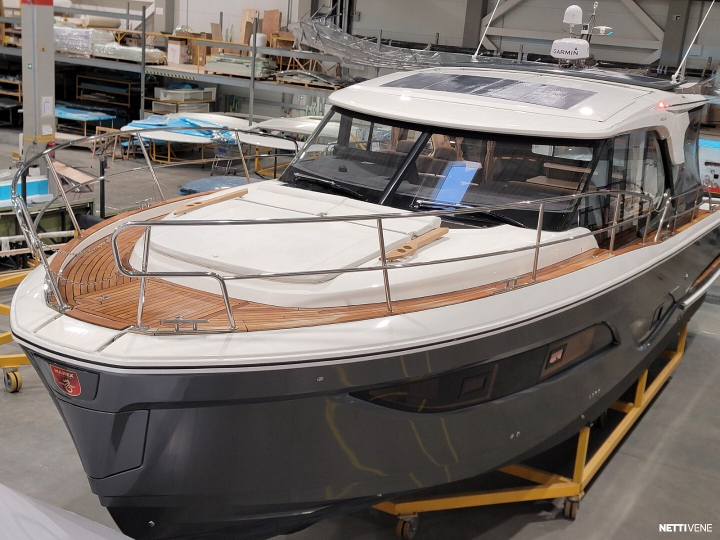 Marex malliston lippulaiva 440 Skandinavia - Marex malliston lippulaiva. Tehtaan demovene, josta on korjattu uuden veneen tyyppiviat.