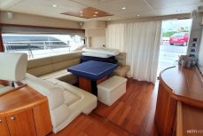 Keskikannella veneen takaosassa avotilassa niinikään tilava pöytäryhmä, jonka saa tarvittaessa täysin katettua. Avotilan jatkeena tilava salonki, joka on varustettu laadukkaalla viihde-elektroniikalla.