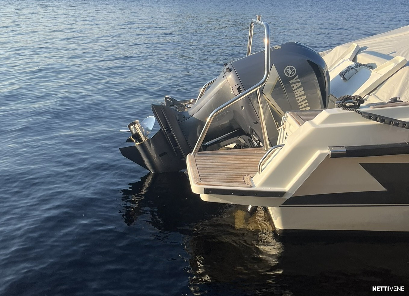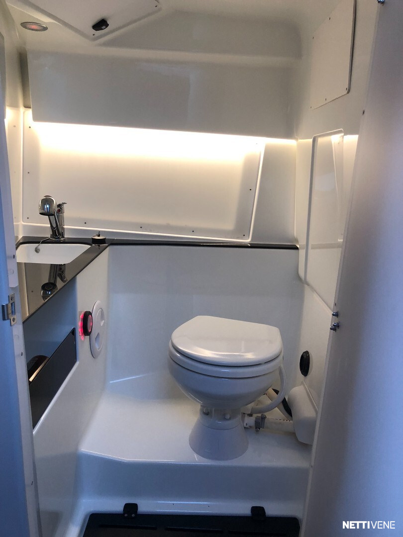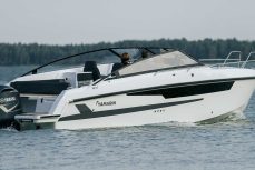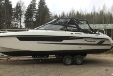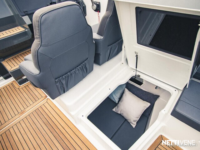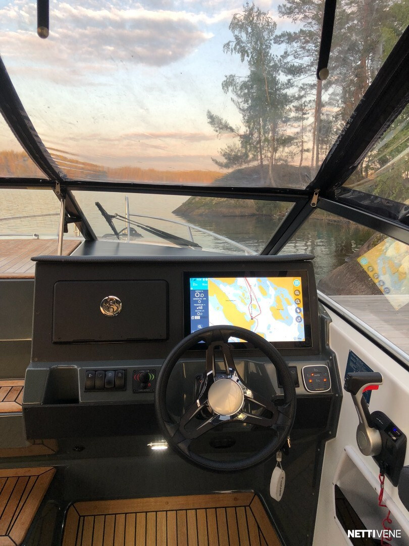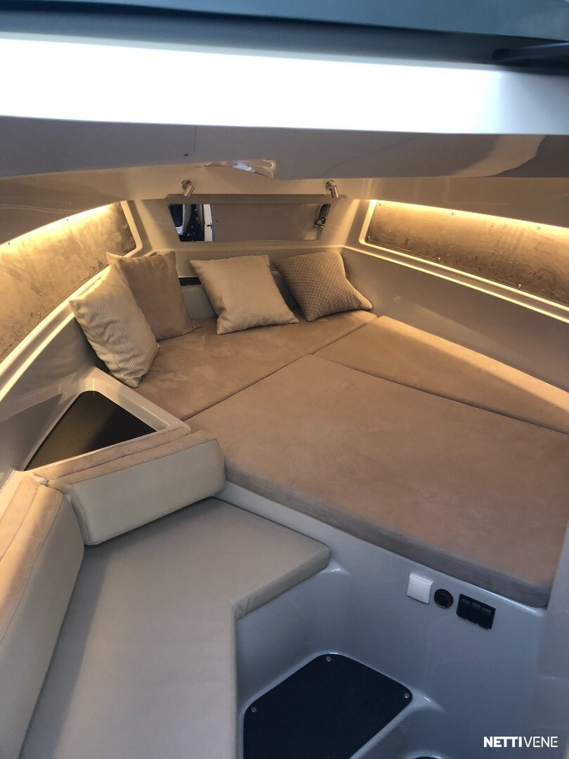 Tilava ja suorituskykyinen DC- / matkavene. Suorituskyyvstä vastaa väkevä Yamaha F350 V8 perämoottori.