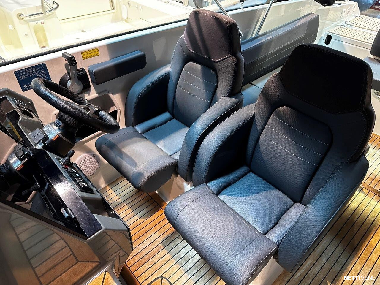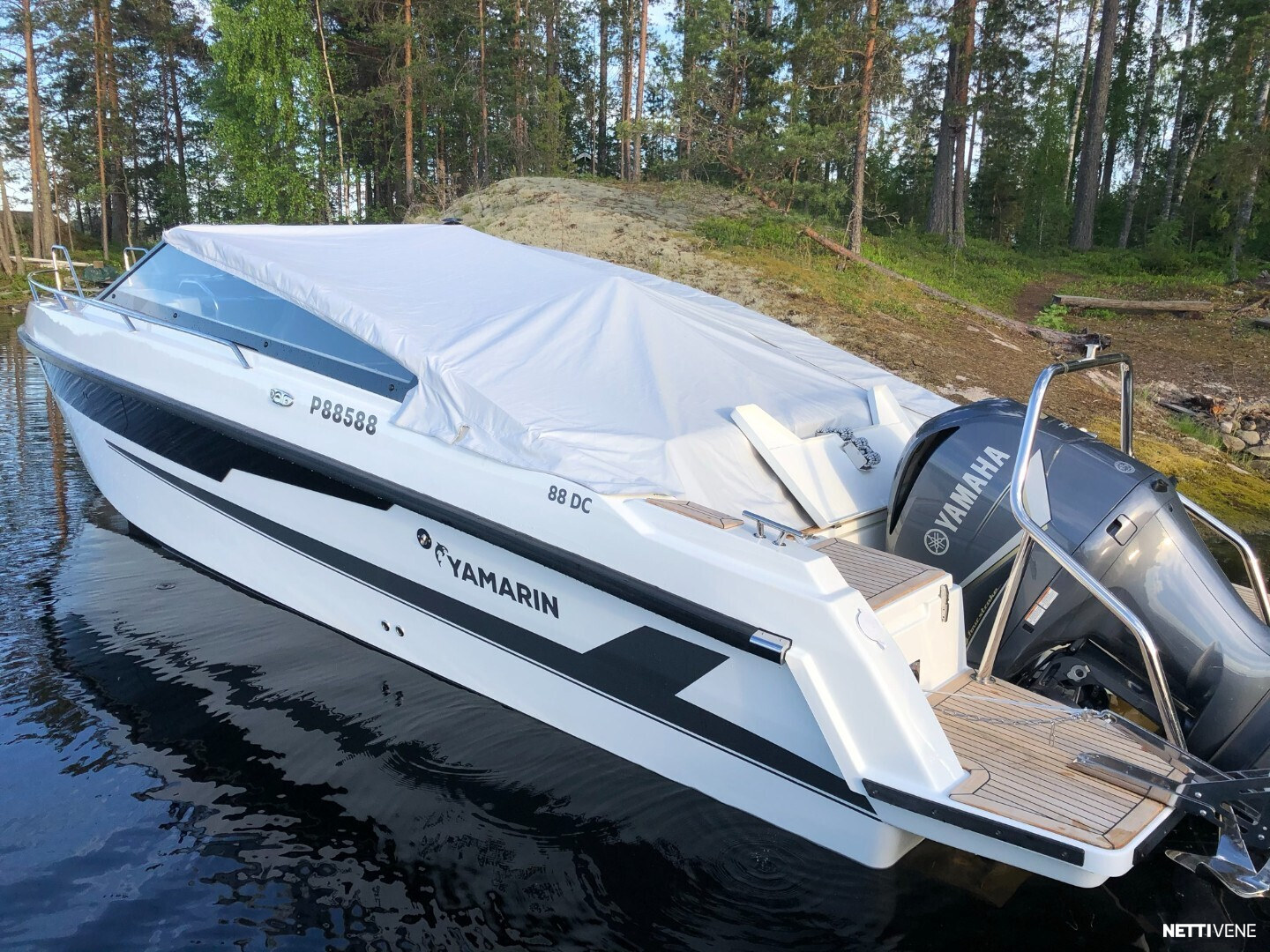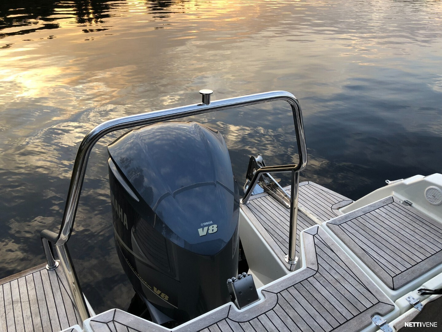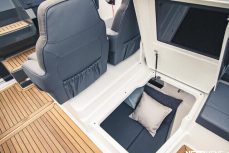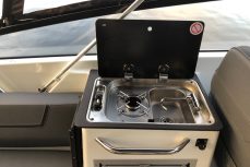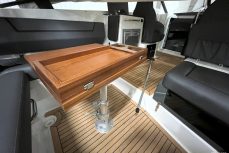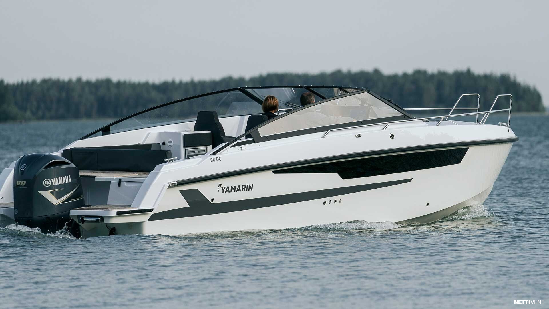 Tilava ja suorituskykyinen DC- / matkavene. Suorituskyyvstä vastaa väkevä Yamaha F350 V8 perämoottori.