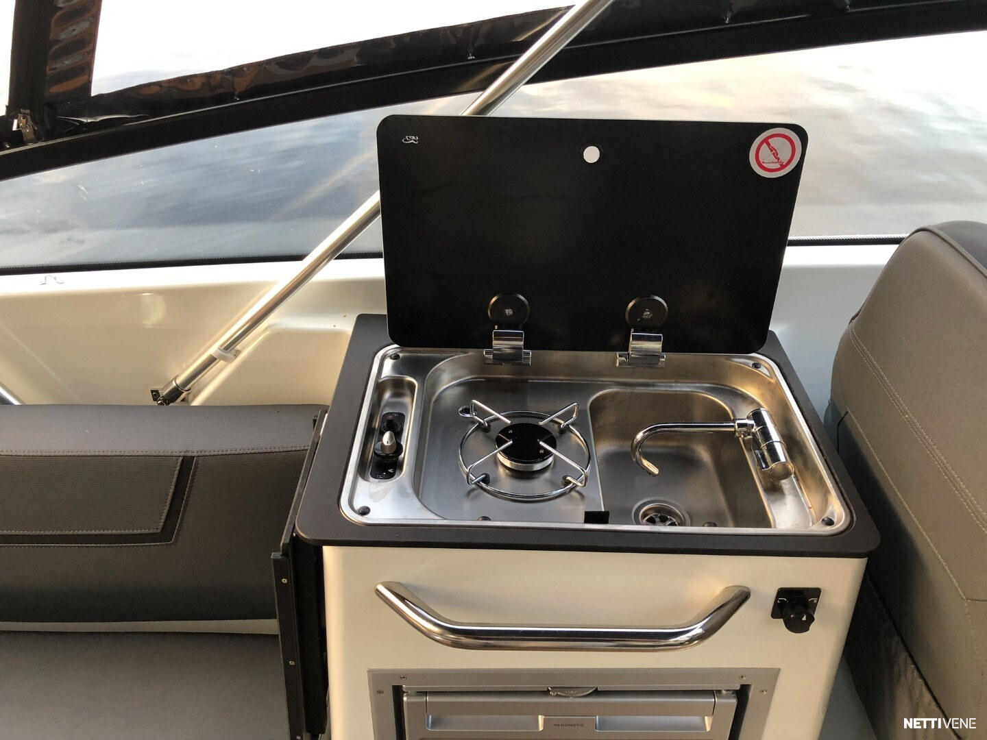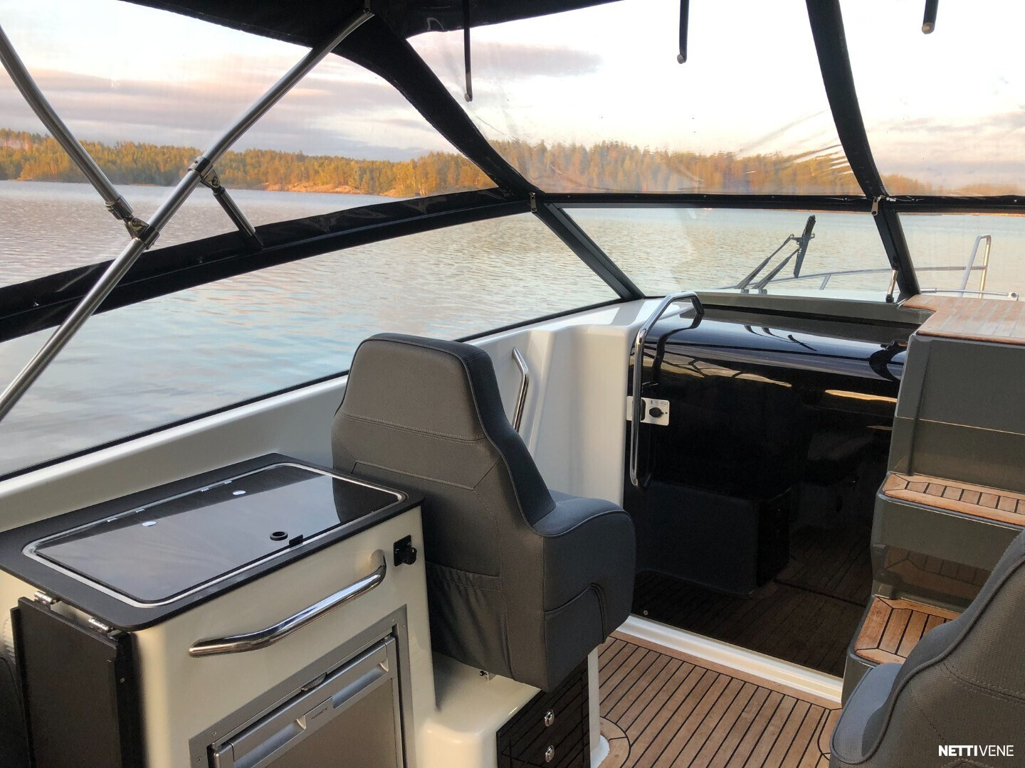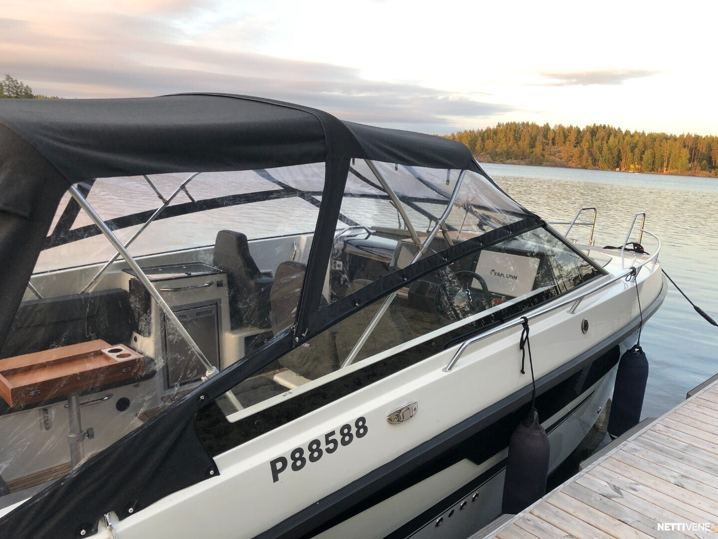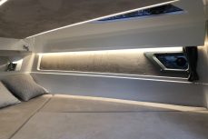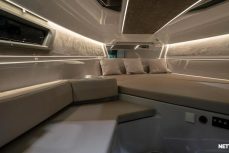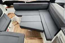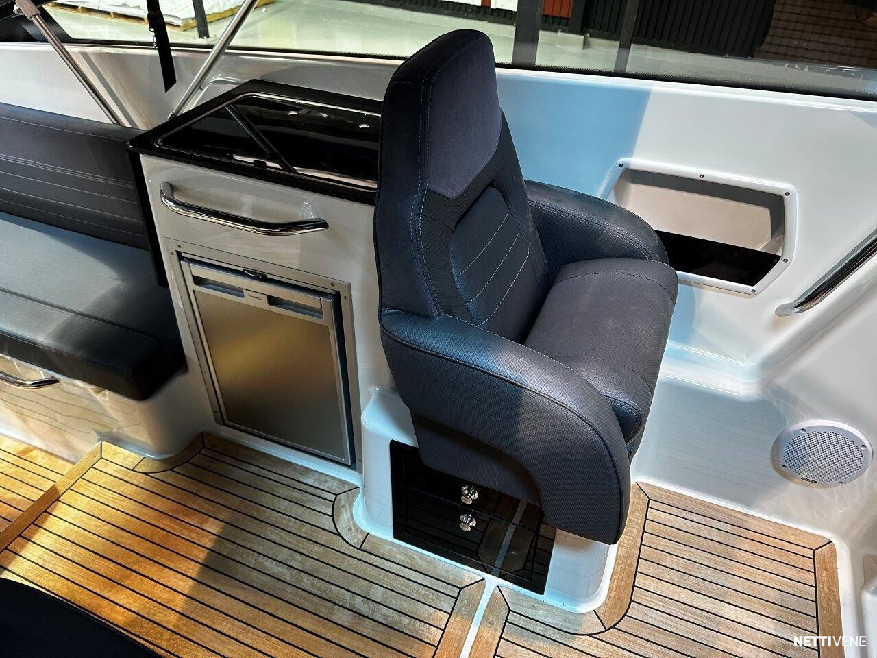Tilava ja suorituskykyinen DC- / matkavene. Suorituskyyvstä vastaa väkevä Yamaha F350 V8 perämoottori.