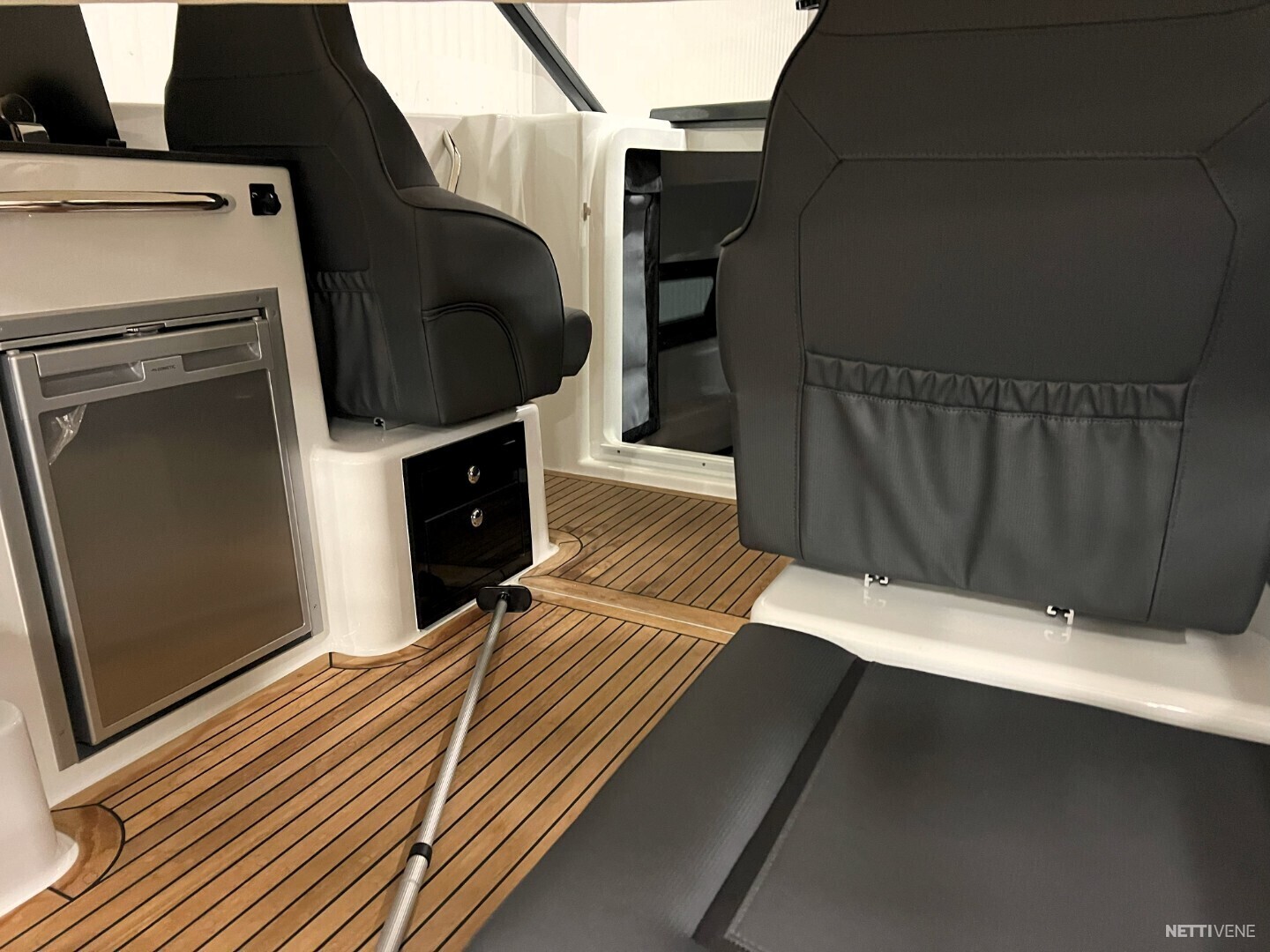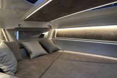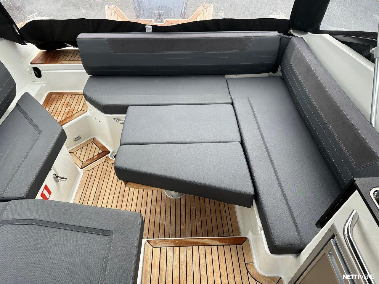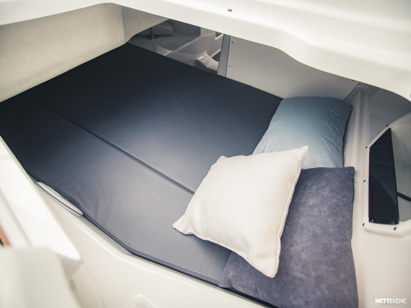 Hulppean kokoinen avotila. Majoitustiloina 2 erillistä kajuuttaa. Veneestä löytyy myös erillinen WC.